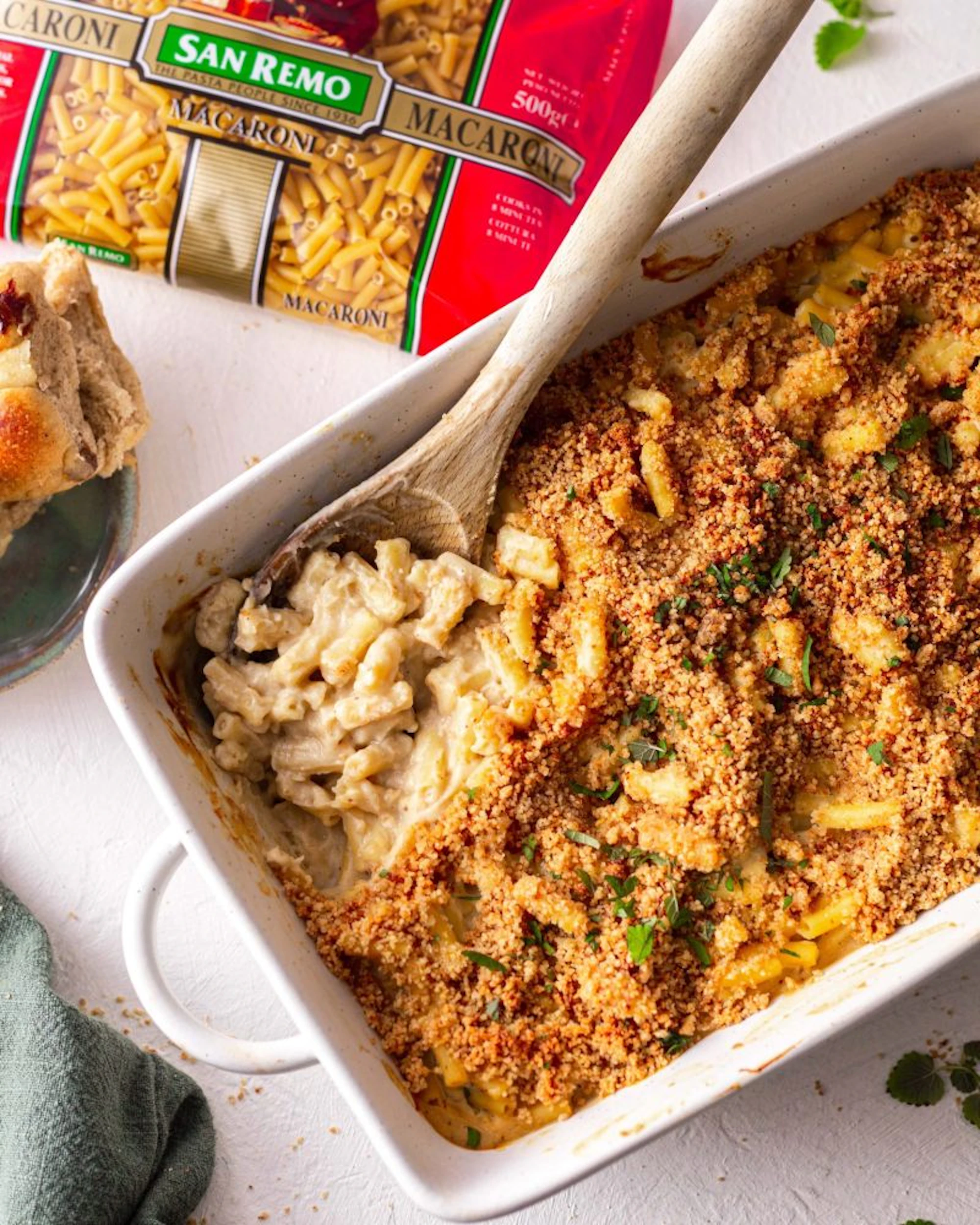 In a large oven-safe casserole dish, gently mix the cauliflower cheese with the cooked Macaroni.
